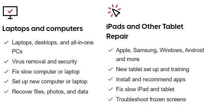 We will also diagnosis, repair or upgrade your devices and Identify any problems and/or barriers that are preventing you from using your device’s full potential and features.